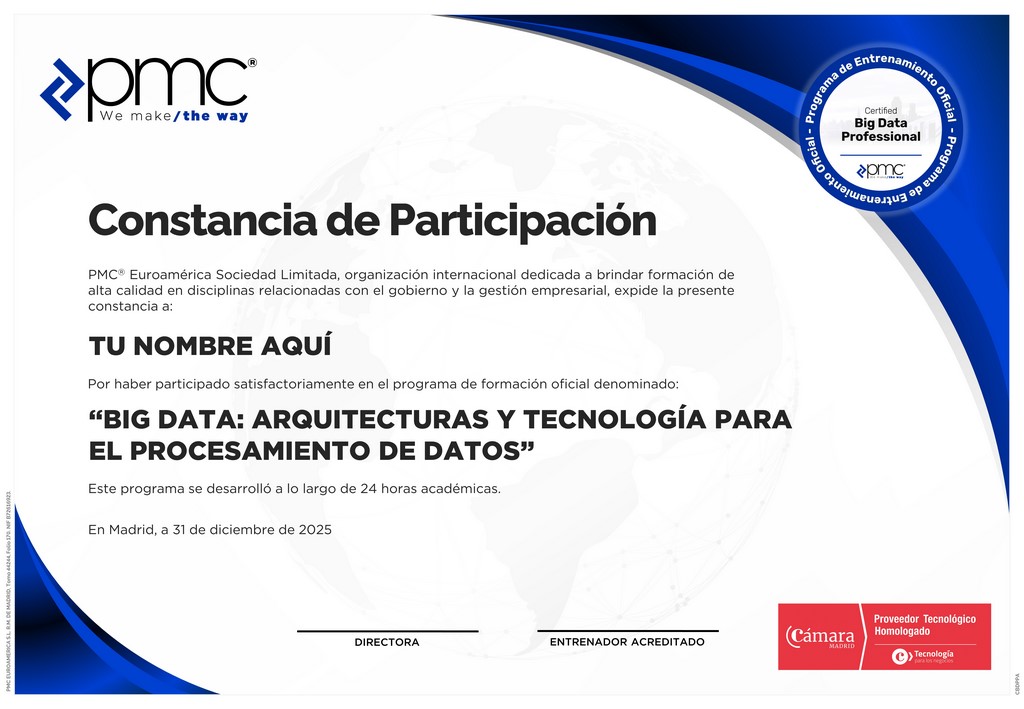 - Consultores, asesores o personas interesadas en conocer más sobre Big Data y que deseen acreditar sus conocimientos.